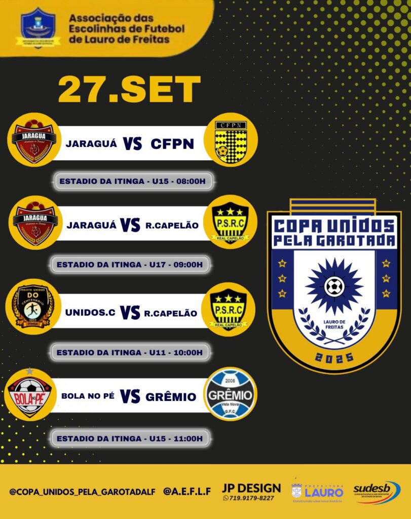 A Prefeitura de Lauro de Freitas, por meio da Secretaria Municipal de Cultura, Lazer, Juventude e Esporte (SECULJE), divulga a agenda esportiva do final de semana, que promete agitar a cidade com competições de futebol e apresentações de ginástica rítmica.